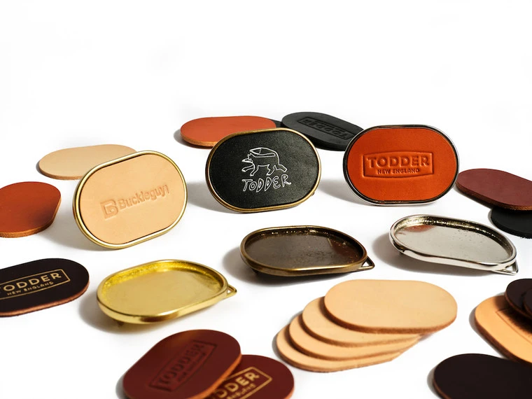 The BG leather insertable plaque buckle was made so you can customize your own belt! You can tool, stamp, paint, or engrave on our leather pieces and simply glue them into the buckle. You can use our Intercom 1804 glue, Barge cements, or a basic epoxy you have at home.