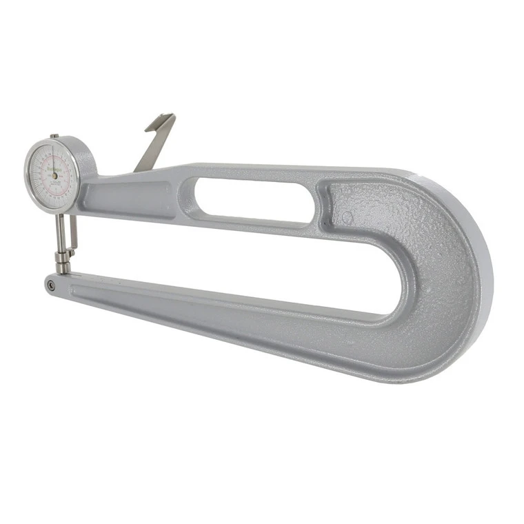 A leather measuring device capable of measuring up to 1.07″(27.13mm) thickness with a 12″ throat.