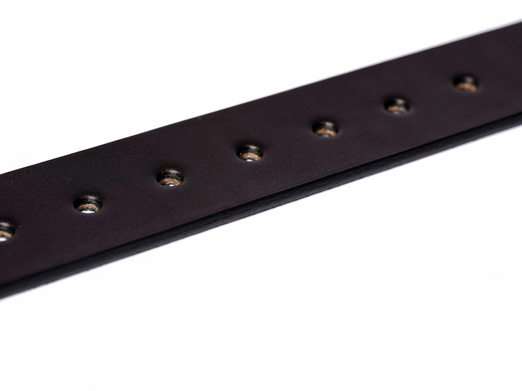 These Wickett black English Bridle leather belts are fully finished with beveled and painted black edges, punched holes, and a leather keeper. All you need to do is choose a buckle and install with Chicago Screws!