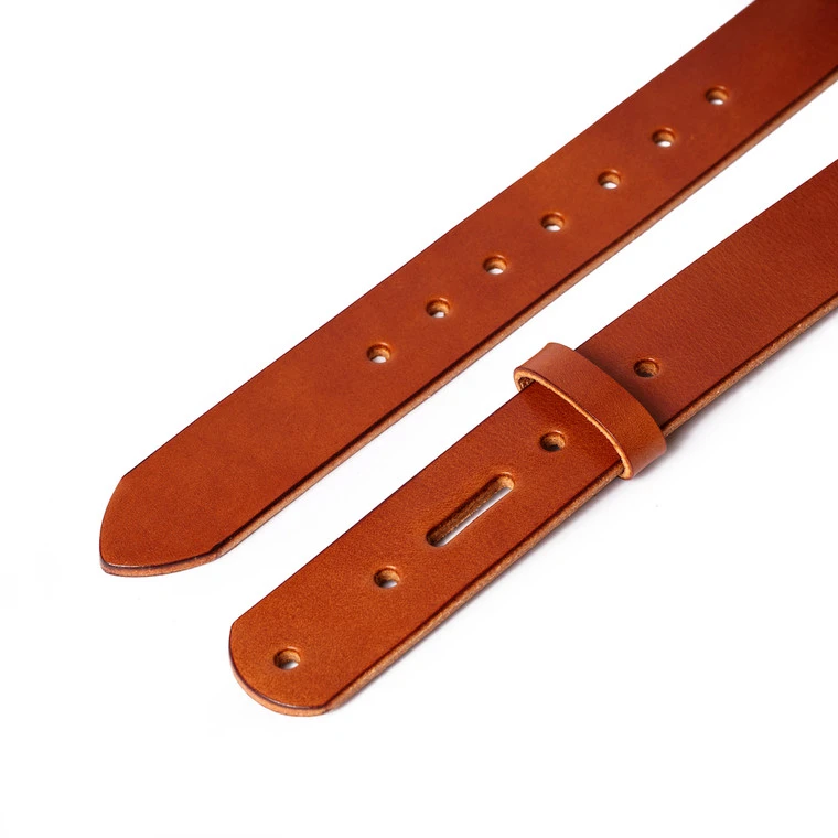 These Wickett buck brown traditional harness leather belts are fully finished with burnished and beveled edges, punched holes, and a leather keeper. All you need to do is choose a buckle and install with Chicago Screws!